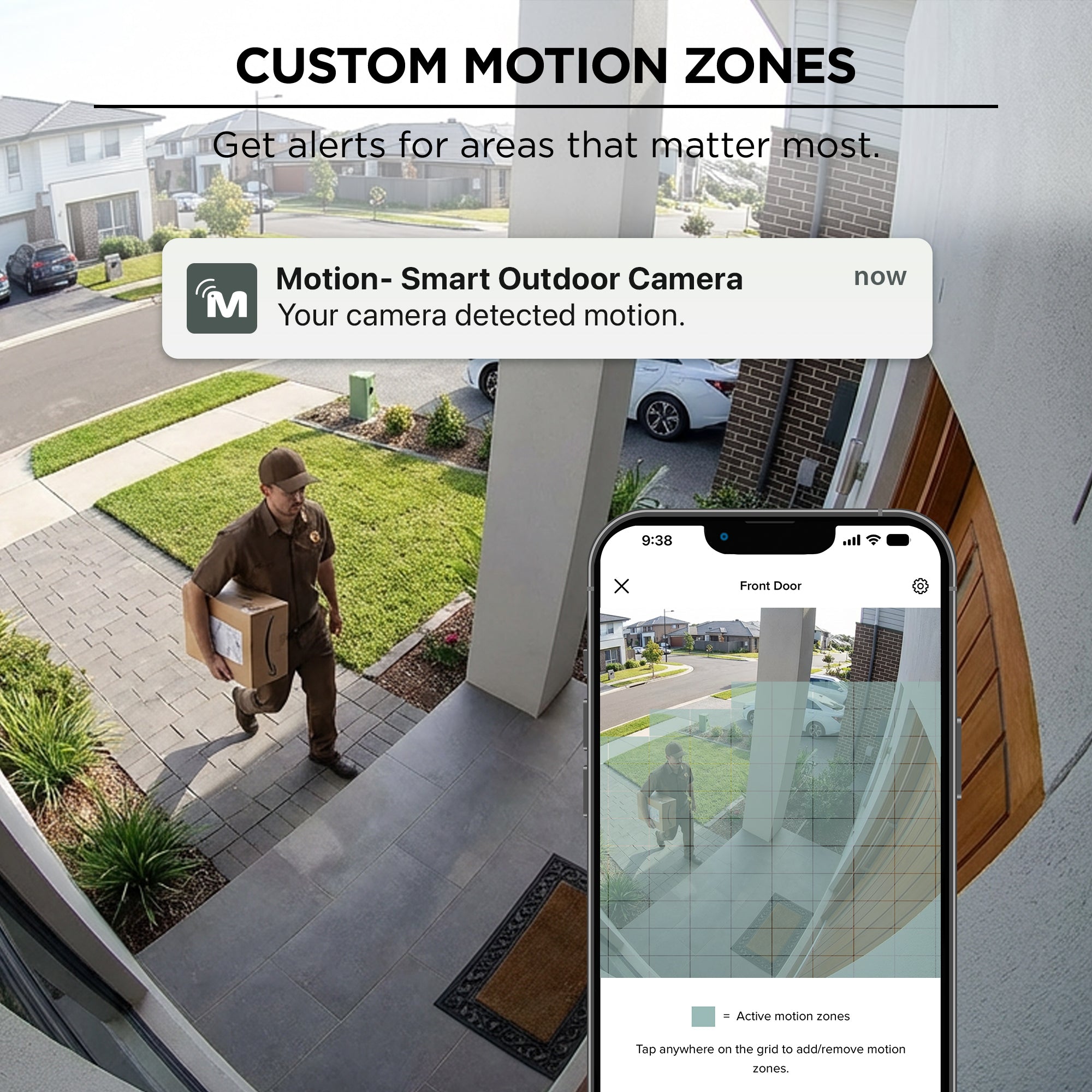 Smart Motion Detection: Upon detection of movement, the security cam automatically delivers instant notification alerts straight to your phone. With it's smart motion detector and sharp night vision range up to 32 feet (10 meters), you can keep an eye on your house 24/7.